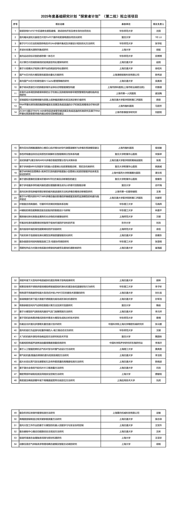关于上海市2025年度基础研究计划“探索者计划”(第二批)拟立项项目的公示