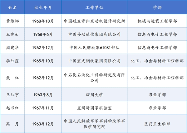 2025年当选中国工程院院士的女性