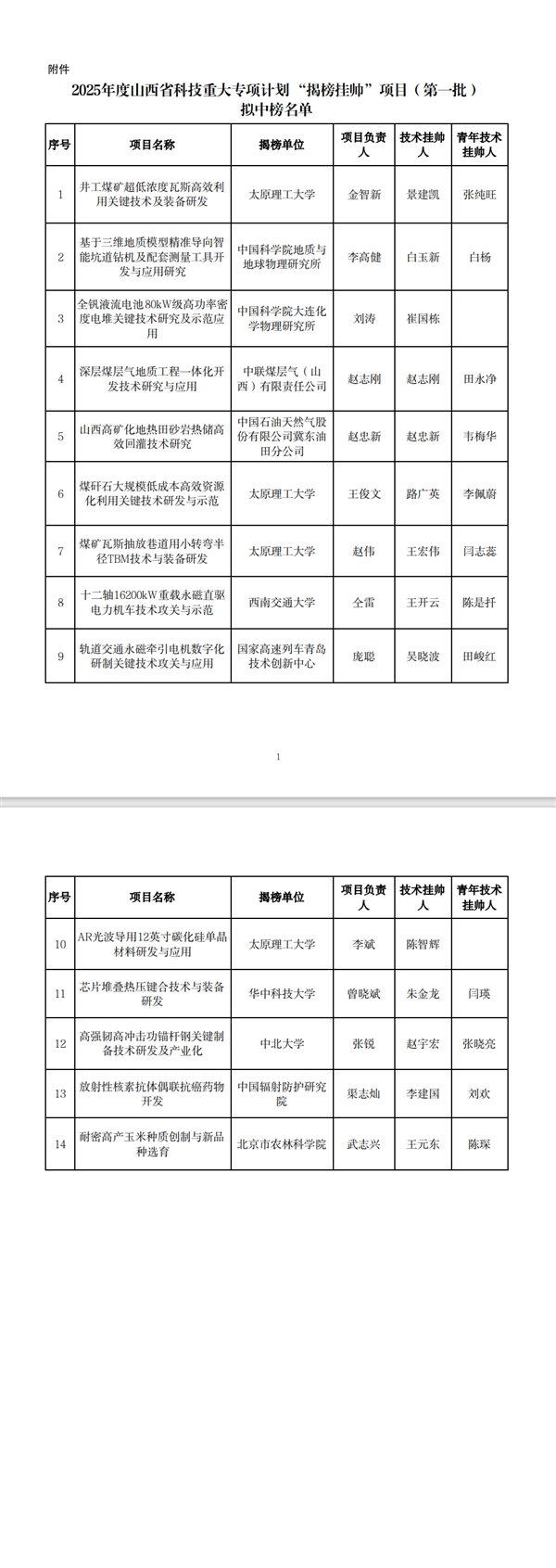 附件:2025年度山西省科技重大专项计划“揭榜挂帅”项目(第一批)拟中榜名单.pdf(点击下载)