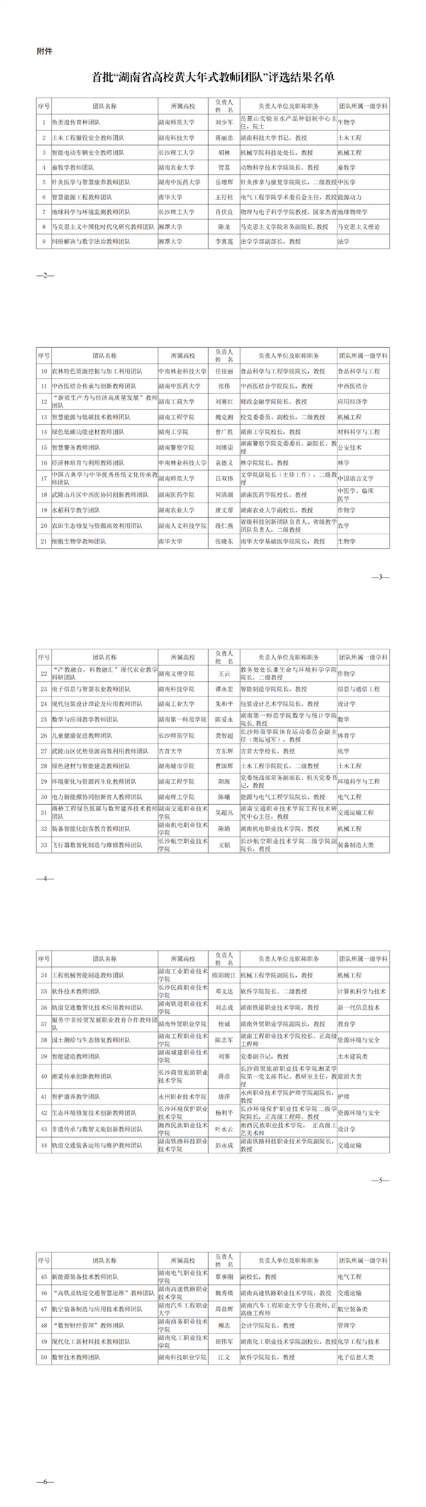 首批“湖南省高校黄大年式教师团队” 评选结果公示名单如下:
