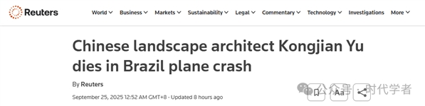 据路透社援引巴西媒体9月23日的消息报道,著名建筑学家,北京大学建筑与景观设计学院俞孔坚教授在巴西不幸坠机身亡,终年62岁。
