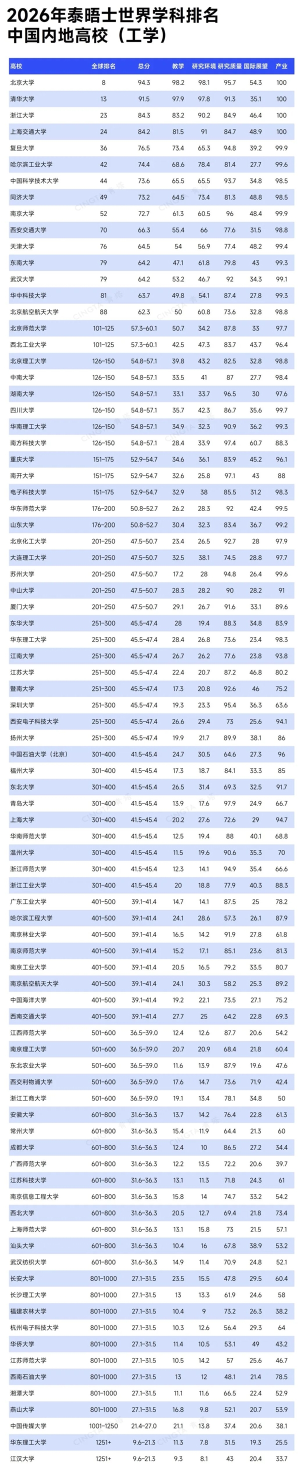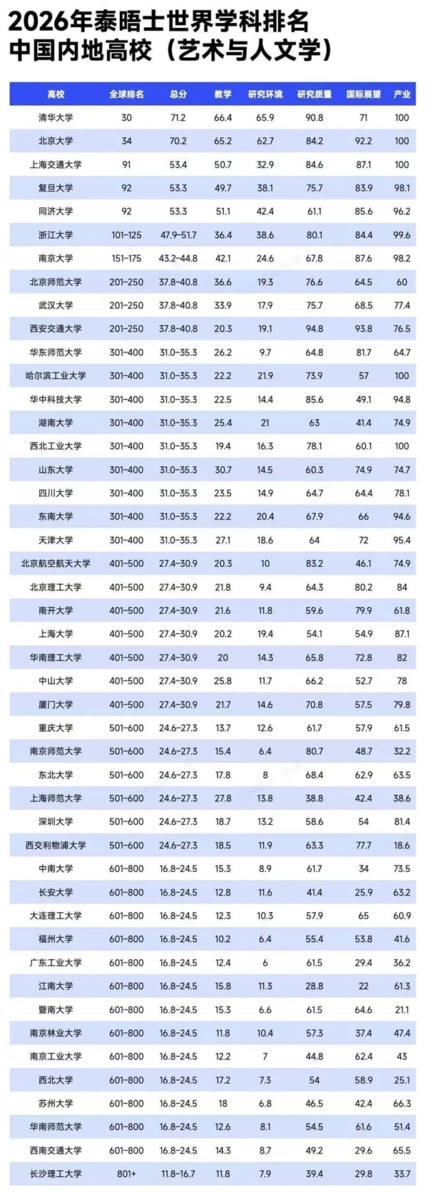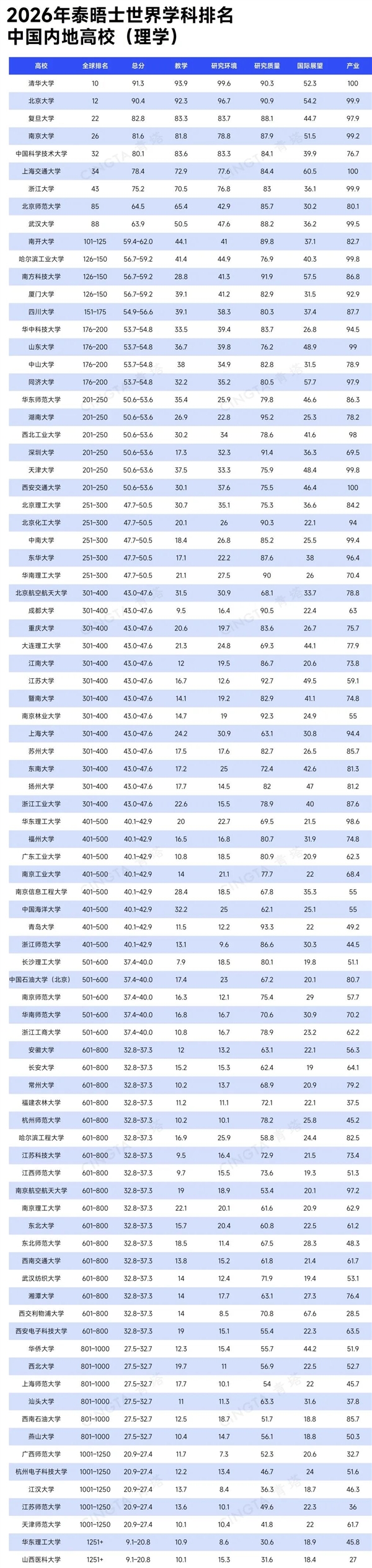 2026年泰晤士高等教育世界学科排名1月21日正式发布。