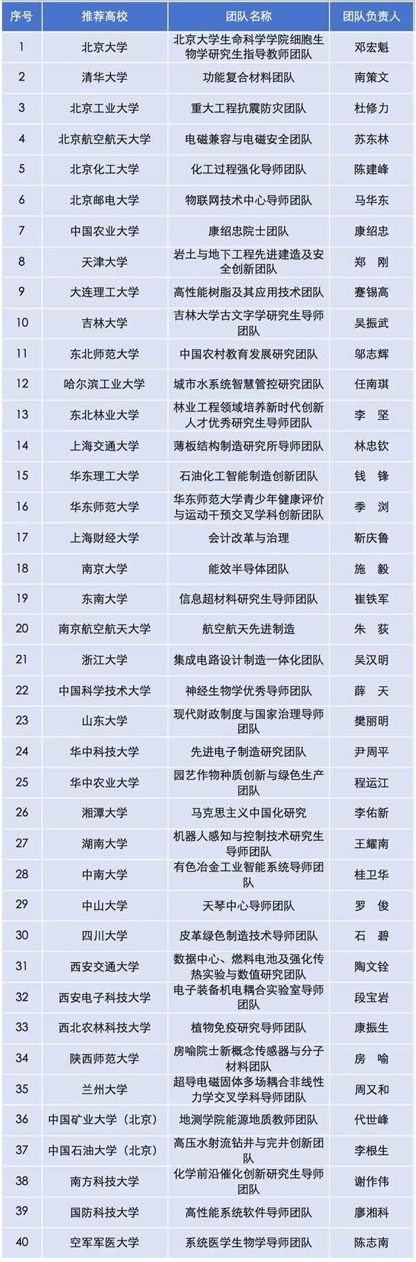 共同体首届优秀研究生导师团队入选名单(按高校代码排序)