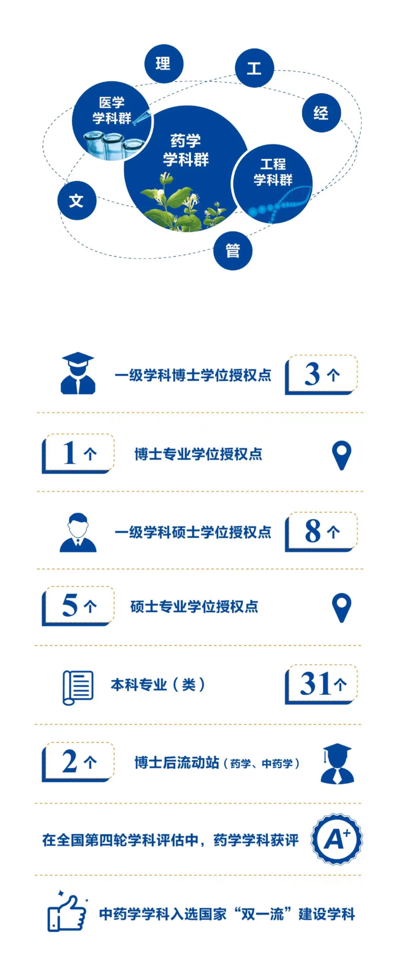 其中以药学、中药学学科为龙头的药学学科群建设始终保持国内领先水平,素有“中国生物医药人才摇篮”的美誉。