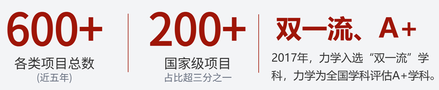 近5年来,学院共负责和参与各类项目600余项,其中国家级项目200多项。2017年,力学入选“双一流”学科,力学为全国学科评估A+学科。学院已与20多个国家和地区的院校建立了良好的交流合作关系,承办了一系列重大的国际活动,面向全世界公开招聘优秀人才。