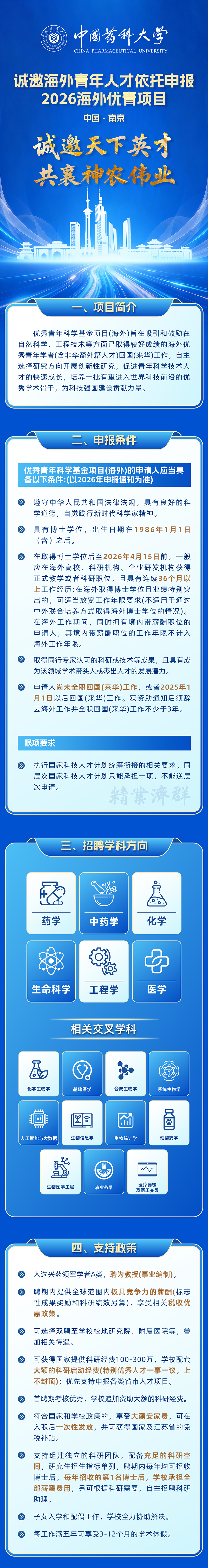 中国药科大学诚邀海外青年人才依托申报2026海外优青项目