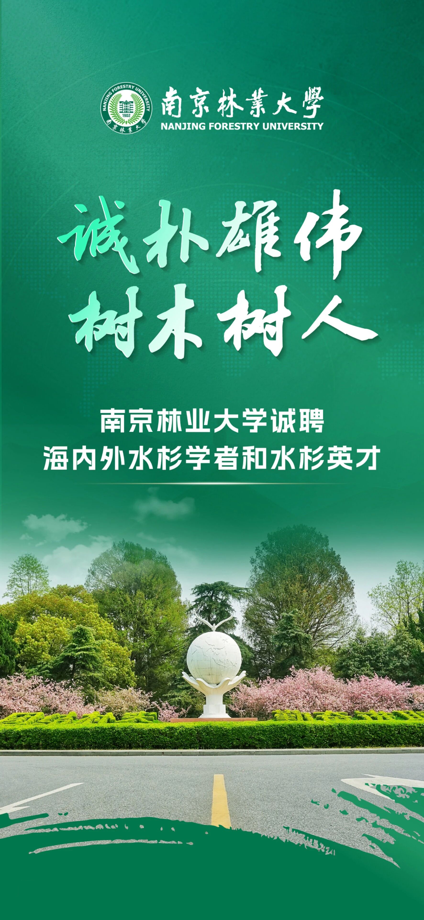 为将学校建设成为具有国际影响力的世界高水平特色大学,逐步实现建设世界一流大学的远景发展目标,学校大力实施“人才强校”战略,对引进海内外优秀人才提供优厚待遇,并为其搭建施展才华和实现人生价值的舞台。青青子衿,悠悠我心。热忱欢迎海内外优秀人才加盟学校,共创南京林业大学美好明天!
